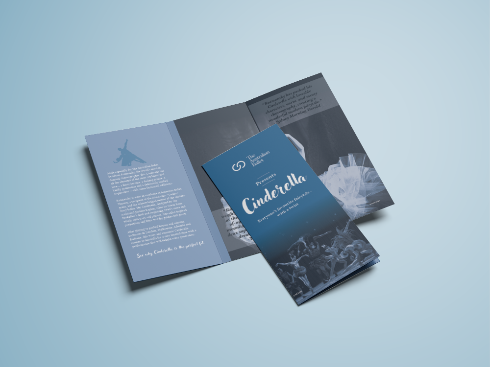 This conceptual brief is all about designing a tri-fold information brochure for the Australian Ballet Company’s production of Cinderella. The challenge in this piece was to stick to a duotone colour scheme.